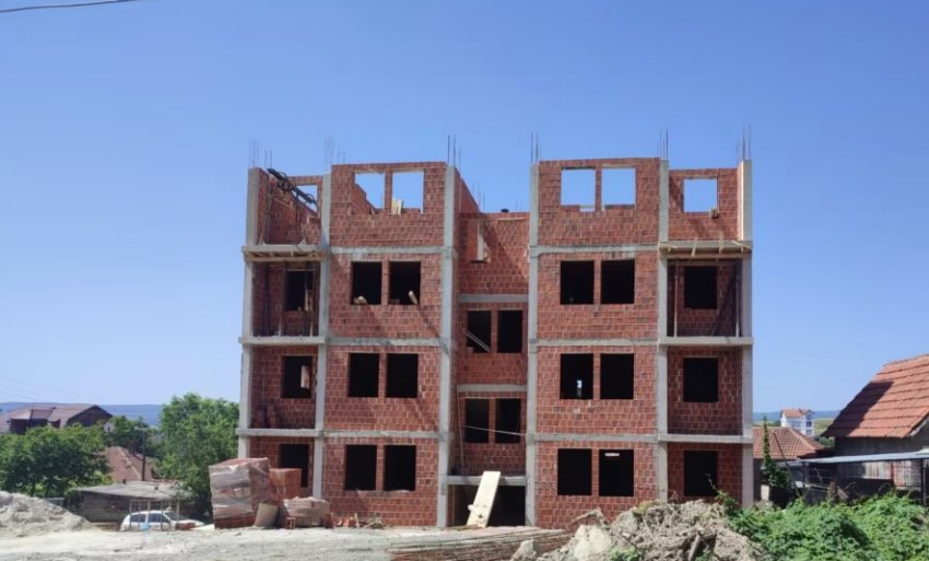 Në vendin e ndërtimit të ndërprerë, tani qëndrojnë muret e katër ndërtesave trekatëshe me tulla, ndërsa kati i katërt mbetet i hapur.