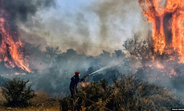 Në korrik, kur Greqia u godit nga një valë e zgjatur e të nxehtit me temperatura që arrinin 46 gradë Celsius në jug të vendit, shpërthyen zjarre të shumta në pyje. Zjarret më të mëdha prekën ishujt turistikë të Rodosit dhe Korfuzit.