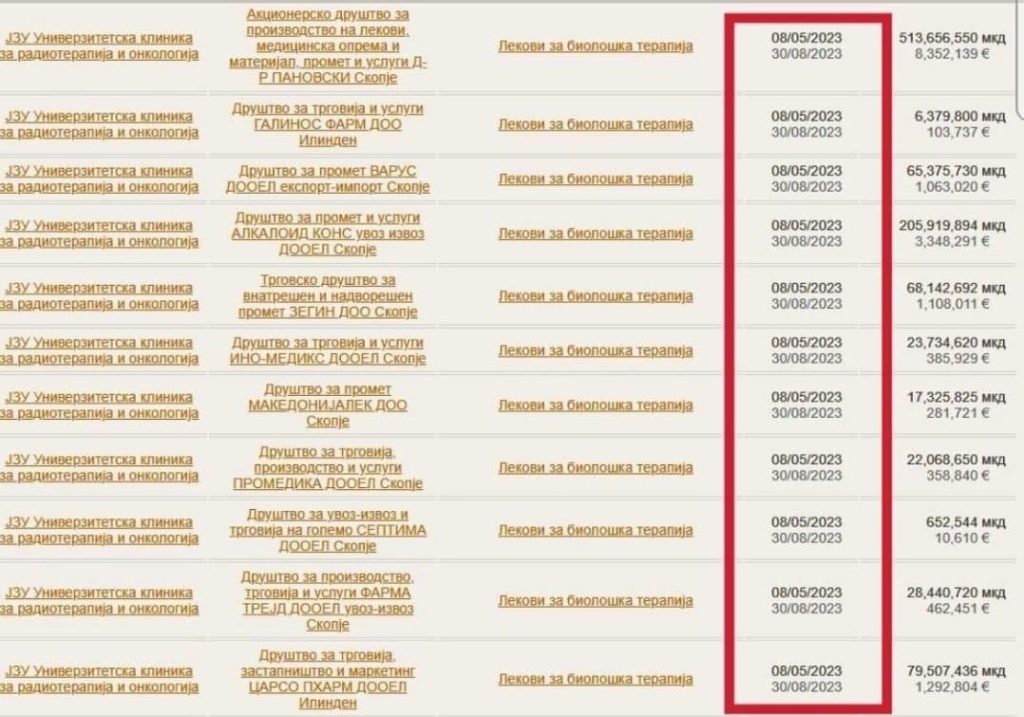 Në një ditë, Klinika Onkologjike bleu citostatik me vlerë të pabesueshme 17 milionë euro! Mbi 55% (8.3 milionë euro) ka përfituar Panovski, babai i drejtoreshës së Klinikës së Hematologjisë-