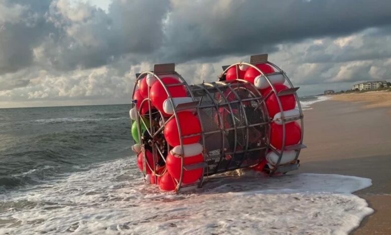 Problemi kryesor është anija e tij: një rrotë gjigante lundrues e bërë nga bova dhe tela, e drejtuar nga vetë Baluchi i cili futet brenda saj.
