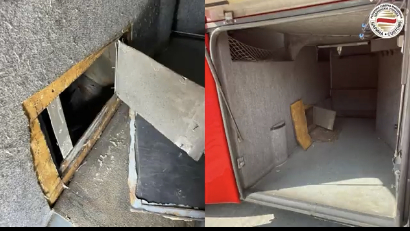 Bunkeri i bërë posaçërisht për kontrabandë me mallra është zbuluar kur autobusi është regjistruar për dalje nga shteti në vendkalimin Tabanovc të premten, por inspektorët doganor nga departamenti operativ i Departamentit të Kontrollit dhe Hetimeve e kanë përzgjedhur për kontroll të detajuar.