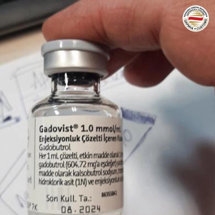 “Gjegjësisht, më 8 shtator, inspektorët doganor të Departamentit për Çështje Operative gjatë kontrollit të autobusit me targa turke që udhëtonte nga Stambolli për në Pejë të Kosovës, në mes, nën njërën prej sediljeve, gjetën një kuti me 329 copë 15. ml tretësirë ​​për injeksion Gadovist 1.0 nga prodhuesi gjerman Bayer, për të cilin pronar është regjistruar pasagjeri me iniciale M.Sh. nga Kosova. Për produktet mjekësore, pasagjeri nuk kishte as leje përkatëse nga Ministria kompetente e Shëndetësisë”, theksohet në kumtesën e sotme nga Drejtoria doganore.