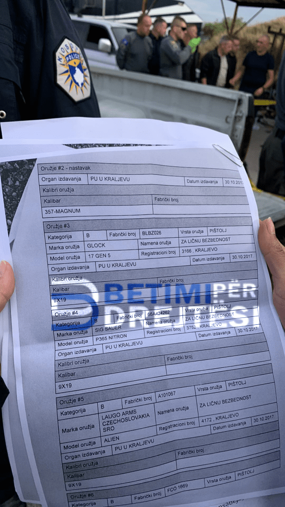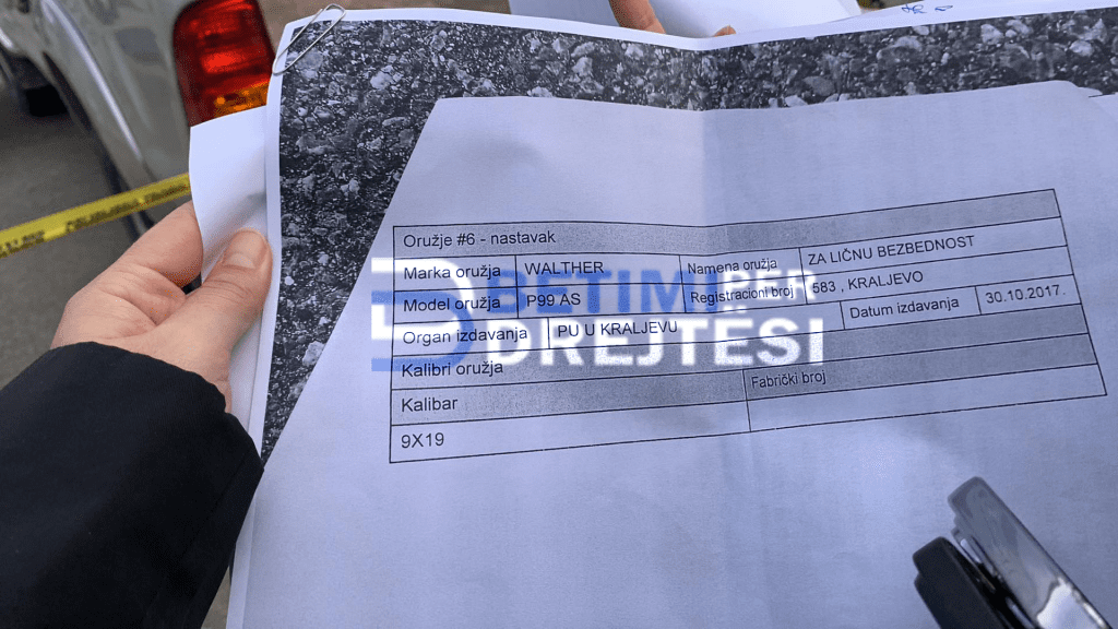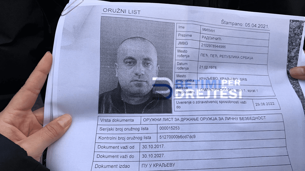 Milan Rajojiçiq rezulton të jetë pajisur nga Policia e Kralevës me leje për përdorimin e gjashtë armëve të llojeve të ndryshme.