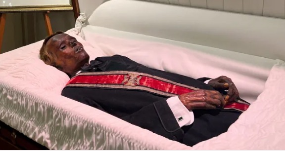 Një burrë i akuzuar si hajdut aksidentalisht është kthyer në një mumje dhe është lënë në shfaqje në një shtëpi funeralesh për më shumë se 100 vjet, para se më në fund të varroset kësaj jave.