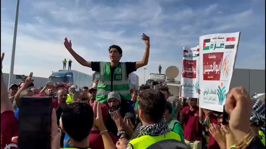 Rreth orës 9.30 me orën tonë (10.30 me orën lokale) 20 kamionë egjiptianë të ngarkuar me ndihma humanitare kaluan kufirin, të cilët ishin plotësisht të blinduar në kufi që nga 7 tetori. Aktualisht, nevojat më elementare të destinuara për popullsinë dhe disa spitale po transferohen në rreth 30 automjete më të vogla, të cilat, të koordinuara nga zyrtarët e Gjysmëhënës së Kuqe Palestineze dhe UNRWA (agjencia e OKB-së për refugjatët palestinezë), do t’i marrin dhe transportojnë në destinacionin e tyre.