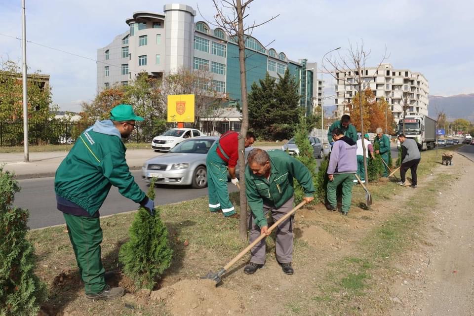 Gjithashtu në Bulevardin Kiro Gligorov ekipet bënë rregullimin e plotë me fidanë të rinj ku u mbollën gjithsej 350 fidanë gjethembajtës të llojit thuja occidentalis smaragd, të cilët në mënyrë lineare i japin plotësi gjithë gjelbërimit të bulevardit.