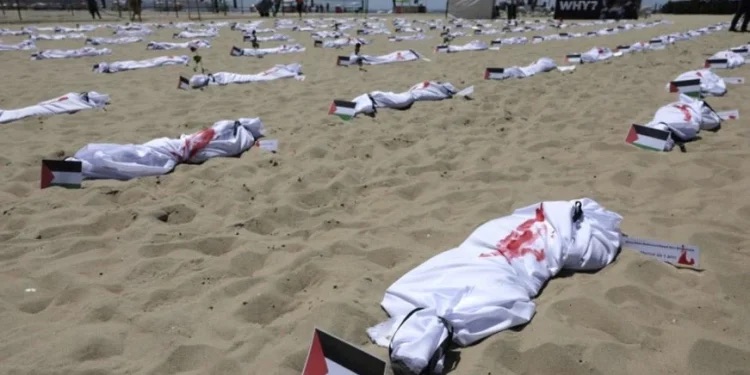 Organizata joqeveritare braziliane Rio de Paz vendosi 120 qefina varrimi në plazhin Copacabana në kujtim të fëmijëve palestinezë që u vranë në sulmin e ushtrisë izraelite në Gaza.