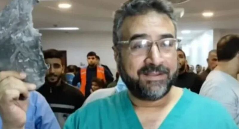 Duke mbajtur në dorë një copë nga një raketë izralite lëshuar aty, Atef al-Kahlout, drejtori i spitalit, tha: “Kjo është ajo që Izraeli po hedh në spitale: copëza raketash”.
