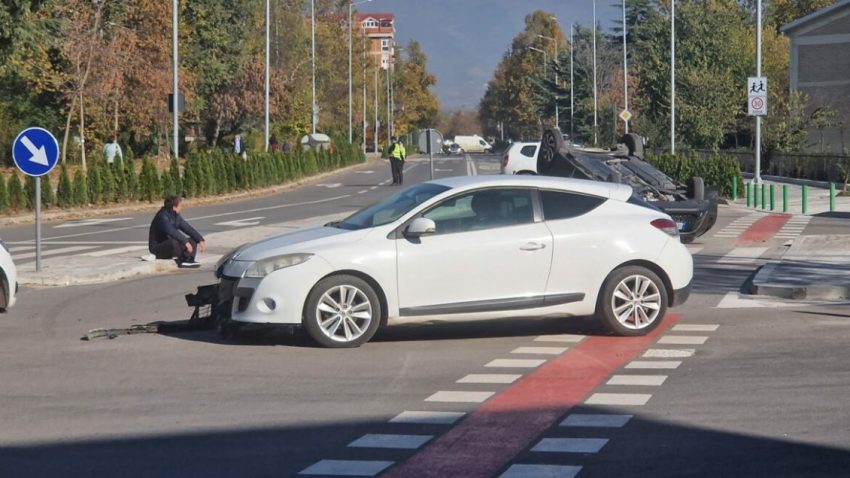 Në aksident kanë marrë pjesë dy automjete, një Renault Megane që ka vetëm dëme të vogla materiale dhe një mjet tjetër i cili është kthyer në çati.