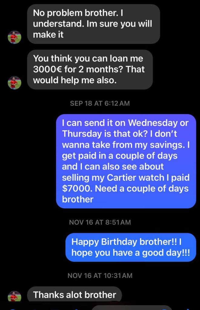 Përmes një postimi në rrjetin social “Facebook”, Zeka ka publikuar disa mesazhe, të cilat sipas tij janë të bashkëshortit të 30-vjeçares, Naim Murselit, ku ai duket se i kërkon para borxh një të huaji dhe ndër të tjera, shprehet se ish-presidenti Behgjet Pacolli i ka dhënë hua 30 mijë euro.
