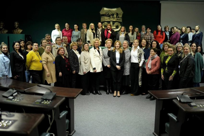 Kryetarja e Qytetit të Shkupit, Danela Arsovska informon rreth takimit që patën së bashku me me kryetaren e Platformës Kombëtare për Ndërmarrësi të Grave, Valentina Disoska me një delegacion të Gender Task Force nga Kroacia dhe Mali i Zi.