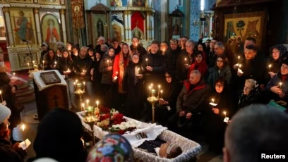 Pas largimit të arkivolit jehonin thirrjet e pjesëmarrësve se “Rusia do të jetë e lirë”, “Jo luftës”, “Rusia pa Putnin” dhe “Putini është një vrasës”.