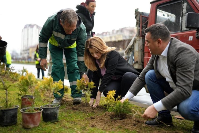 Kryetarja e Qytetit të Shkupit Danela Arsovska  dhe drejtori i NP “Parqe dhe gjelbërime”, Sefi Shabani sot zbukuruan Shkupin me mbi 2000 fidanë