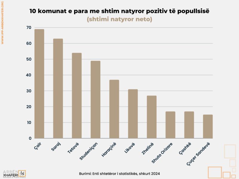 10 komunat e para për nga shtimi pozitiv popullsisë, 8 prej tyre janë me shumicë shqiptare, respektivist: