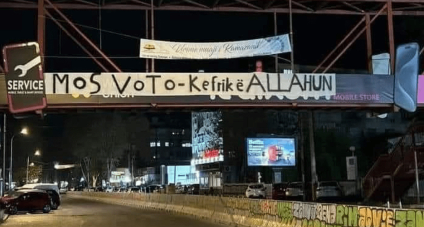 Një transparent me përmbajte të ngjashme u vendos mbi urën e hekurt në Komunën e Çairit, pranë shkollës fillore “Liria”, me mbishkrimin “Mos voto – ke frikë ALLAHUN”, nën transparentin tjetër të vendosur nga Myftinia e Shkupit me mbishkrimin “Urime muaji i bekuar i Ramazanit”, vërehet në fotografitë e shpërndara në rrjetet sociale.