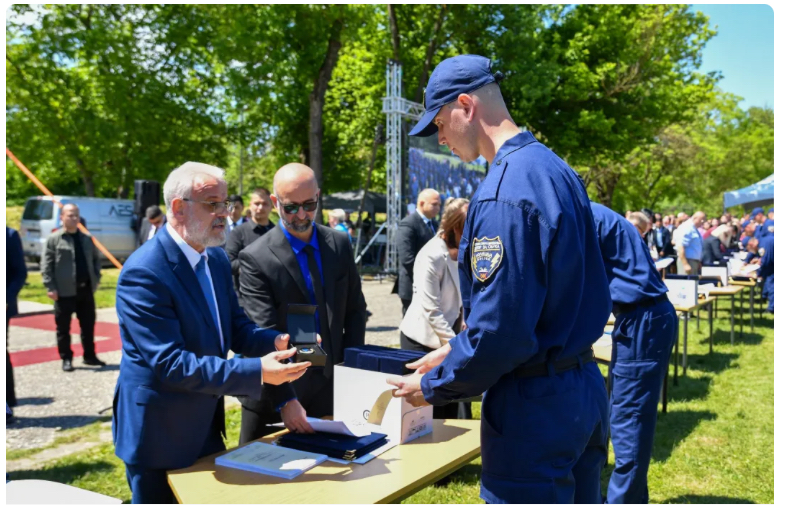 Sot të gjithë ne të pranishëm këtu, jemi krenar me motivacionin dhe qëndrueshmërinë tuaj për përfundimin e suksesshëm të trajnimit njëvjeçar këtu në Qendrën e Trajnimit pranë Ministrisë së Punëve të Brendshme.