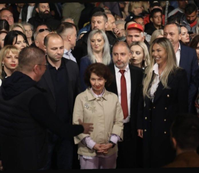 Këngëtarja Adelina Tahiri ka postuar disa fotografi në Instagramin e saj ku shihen në afërsi të liderit të VMRO-së Hristian Mickoski në tubim partiak.