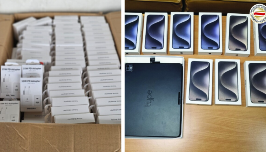 “Gjithsej 21 telefona celularë “iPhone 15 Pro” me vlerë të përgjithshme prej një milion denarë janë konfiskuar në Aeroportin Ndërkombëtar të Shkupit pas kontrollit të detajuar të mallit të deklaruar për doganë importuese. Telefonat celularë të padeklaruar janë zbuluar gjatë kontrollit të detajuar fizik të një dërgese nga Dubai e cila ishte dedikuar për një kompani nga Shkupi”, thuhet në njoftimin e Drejtorisë së Doganave.