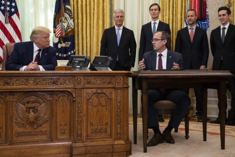 Kryeministri i Kosovës në atë kohë, Avdullah Hoti dhe presidenti i Serbisë, Aleksandar Vuçiq, para katër vjetësh nënshkruan marrëveshjen për normalizim ekonomik në Shtëpinë e Bardhë, në prani të presidentit të atëhershëm të Shteteve të Bashkuara, Donald Trump.